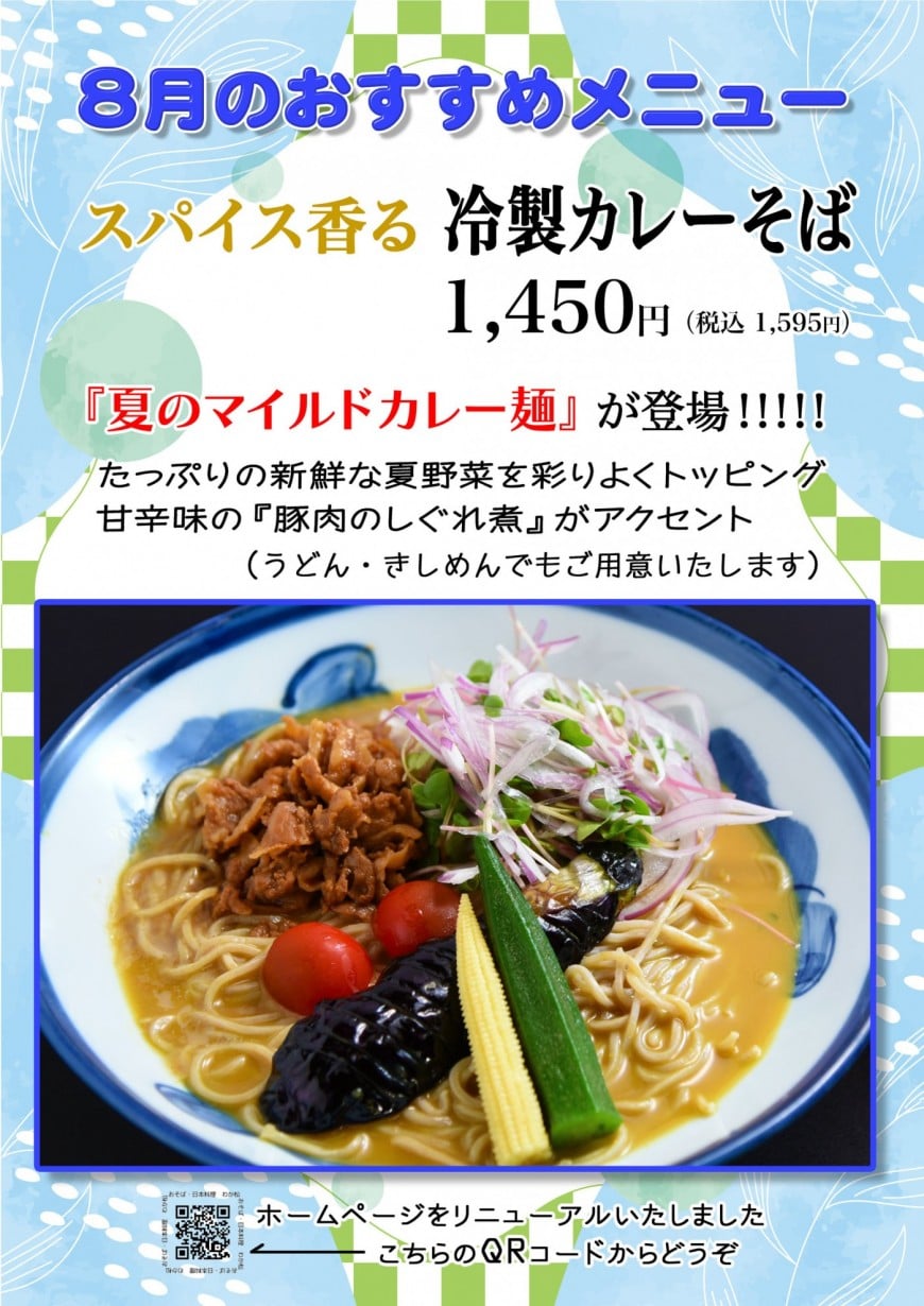ということで今日ご紹介するのは、今月のおすすめメニュー、スパイス香る『冷製カレーそば』。